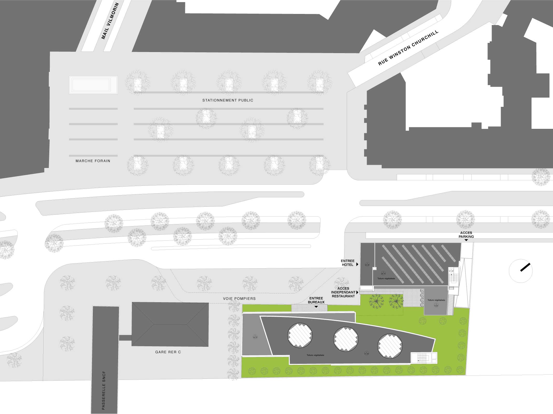Conception d’un ensemble immobilier venant achever la réalisation de la place de l’Union Européenne, et comportant un hôtel 2 étoiles et un immeuble de bureaux.
