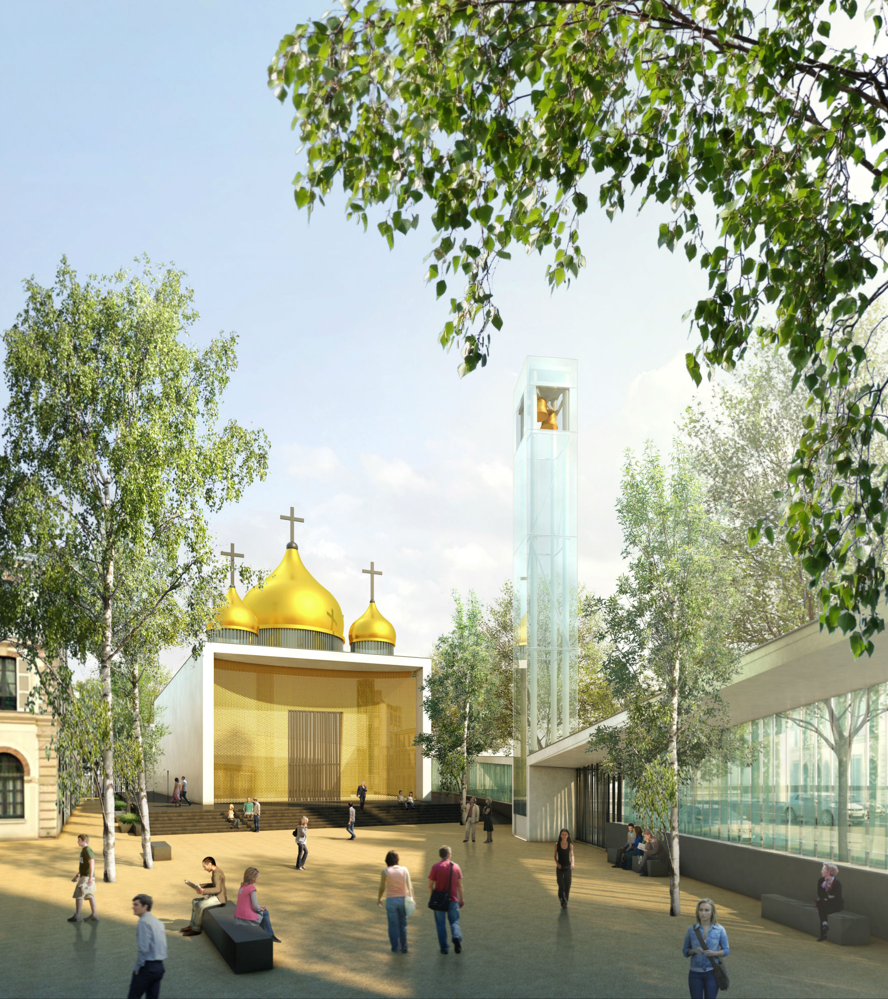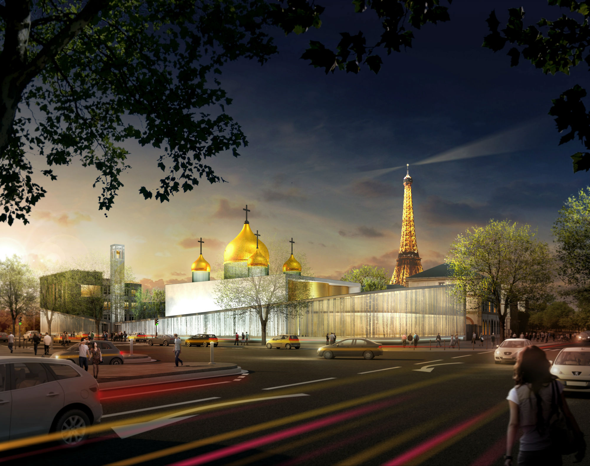 Le projet est conçu comme un écrin qui doit mettre en valeur son précieux contenu, la nouvelle église orthodoxe russe, sur fond de Tour Eiffel.