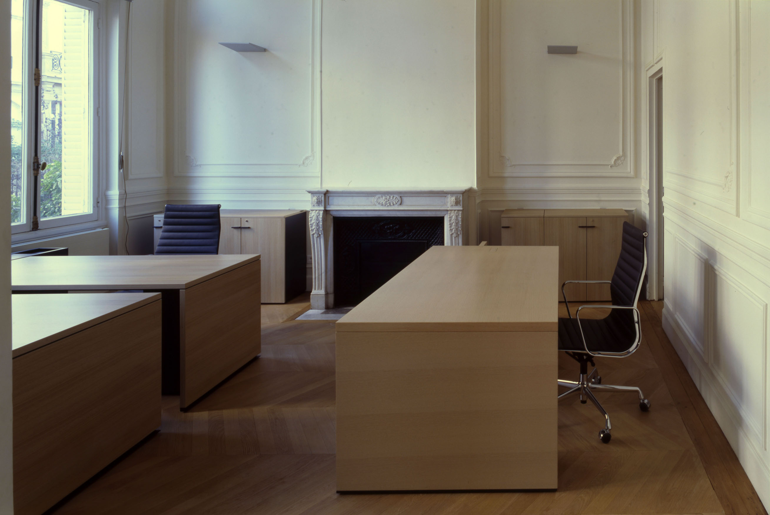 Aménagement intérieur et space-planning d’espaces de bureaux, de réunion, de réception et de détente intégrant le choix du mobilier, dans un bel Hôtel particulier du XIXème siècle entièrement rénové.